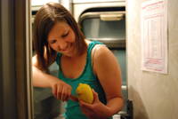 Včera to bylo parádní, končíme s dvěma Ukrajinci mezi vagony a mezerou sledujeme, kdy přejde Evropa v Asii. Dnes je to o poznání horší. Pár hodin spánku a stakančiky vodky vykonaly své. Ekatěrinburg trávíme v parku, kde čekáme pár hodin na vlak do Verchoturie (zatím nám přijde ošklivý, zítra si mínění napravíme). Ačkoliv máme tentokrát opravdu dost času, na vlak opět běžíme. Ve vlaku pak sedíme dlouhých pět hodin, abychom přijeli do malé vesnice, která jako by sloužila pro natáčení Mrazíka. Spousta dřevěných domů, malovaná okna i ploty. Překvapivě jsou obchody (v 11 v noci!) stále otevřené a vesnice žije, dokonce jezdí místní autobus. Po půl hodině chůze zjišťujeme, že náš dnešní cíl - klášter je ještě dobrých 8km vzdálený a za funkční MHD uprostřed noci jsme velice vděčni. Stačí zamávat a už jedeme… Klášter je vypadá nádherně a to ještě netušíme, co nás čeká uvnitř. K doplnění předávám slovo Zuzce. (viz další den)