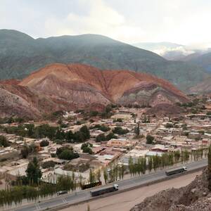 19. 5.: Jedeme ve třech, na cestu z Aldea Luny se k nám přidává Blair, 20letý kluk ze Skotska. Je to trochu pako, ale je s ním zábava. Nejí zeleninu, básní o smažené čokoládě, smažené pizze, smaženém řízku a dalších skotských specialitách. Na vegetariánské farmě dost trpěl. Máme namířeno do Jujuy a z toho hned do Purmamarcy, což je malé městečko na severu, podobně jako Aldea Luna, jen v jiném údolí. Proměna krajiny je ale neuvěřitelná, ze zelených lesů je pustá poušť, kaktusy a nádherné barvené hory – ostatně po těch se tu chystáme šplhat. Blaira jsme tu na dva dny adoptovali a snad přežije zbytek cesty v pohodě. Rozhodl se přijet na čtrnáct dní pouze na farmu (přiletěl přímo do Jujuy a nechal se odvézt z letiště) a zbývá mu ještě týden na prohlídku okolí. S ubytováním není v tuhle dobu žádný problém, ve velkém hostelu jsme prakticky sami (130pesos/osoba, asi 220kč) a turisty by člověk pohledal. Není se tolik čemu divit, na sluníčku je pěkně, ve stínu dost chladno a večer a ráno máme pod nulou. Je na čase ulovit nějakou čepici z lamy.
