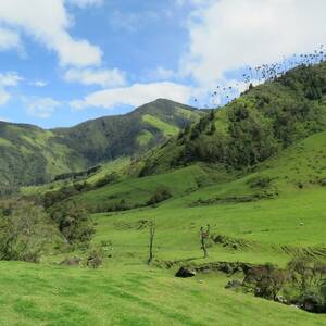 Údolí je nejvíce známé pro své krásné sytě zelené svahy (tak zelenou zelenou jsme dlouho neviděli) a voskové palmy. Ty mohou dorůstat až 60m výšky a jsou specifické výskytem v tomto údolí. Dříve se používaly na výrobu svíček a stavbu domů, dnes už převážně jen tak rostou. Procházíme asi 5 km dlouhý trek, na jehož konci je ještě jedna zajímavost, zahrada kolibříků. Uprostřed džungle se tu objevuje několik obydlí a za malý příspěvek 5000COP (40Kč) tu lze dostat kafe či čokoládu a popíjet při pozorování podobně popíjejících ptáčku. Po stromech tu jsou rozvěšené nádobky se sladkou vodou, kde se ptáčci snaží dlouhým jazykem pár kapek ulovit. Alespoň půl hodiny je nadšeně pozorujeme.