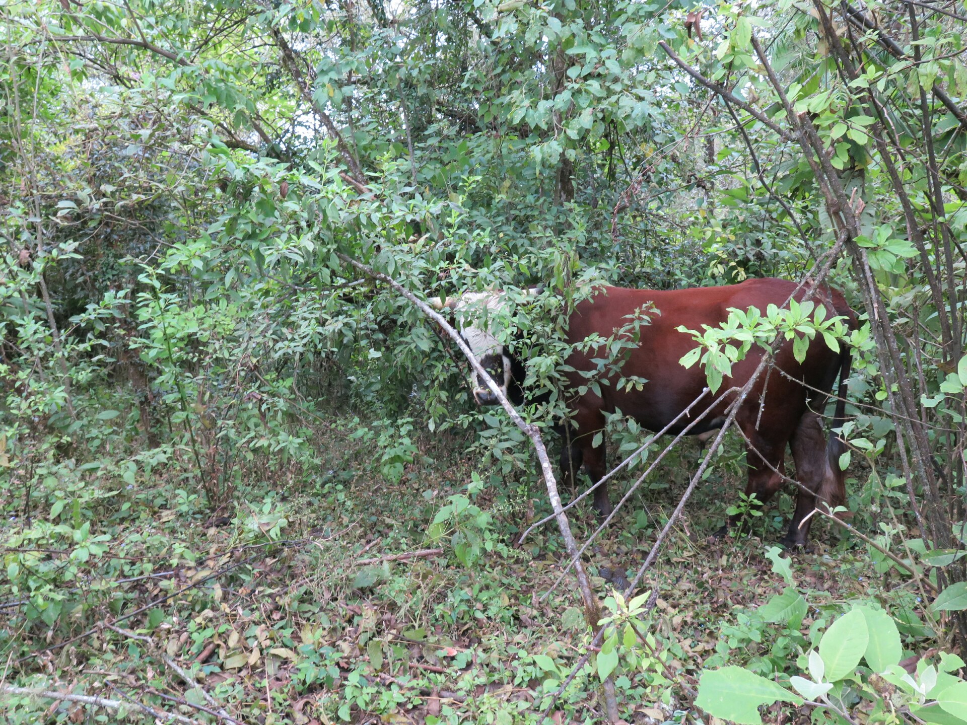 Krávy se nečekaně vynořují u cestiček v lese.
