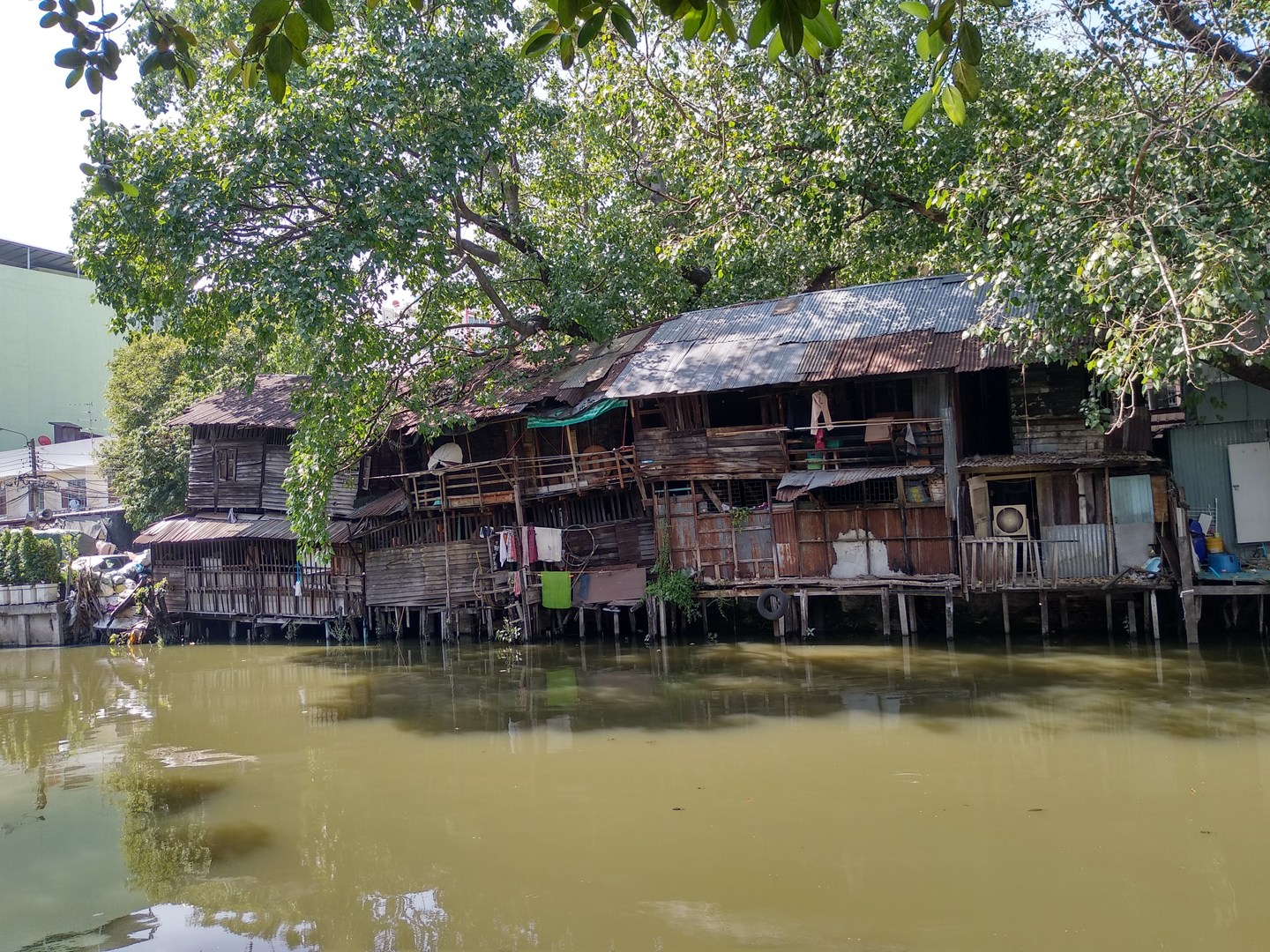 Není vidět, ale pod baráčkem plave had.