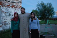Včera to bylo parádní, končíme s dvěma Ukrajinci mezi vagony a mezerou sledujeme, kdy přejde Evropa v Asii. Dnes je to o poznání horší. Pár hodin spánku a stakančiky vodky vykonaly své. Ekatěrinburg trávíme v parku, kde čekáme pár hodin na vlak do Verchoturie (zatím nám přijde ošklivý, zítra si mínění napravíme). Ačkoliv máme tentokrát opravdu dost času, na vlak opět běžíme. Ve vlaku pak sedíme dlouhých pět hodin, abychom přijeli do malé vesnice, která jako by sloužila pro natáčení Mrazíka. Spousta dřevěných domů, malovaná okna i ploty. Překvapivě jsou obchody (v 11 v noci!) stále otevřené a vesnice žije, dokonce jezdí místní autobus. Po půl hodině chůze zjišťujeme, že náš dnešní cíl - klášter je ještě dobrých 8km vzdálený a za funkční MHD uprostřed noci jsme velice vděčni. Stačí zamávat a už jedeme… Klášter je vypadá nádherně a to ještě netušíme, co nás čeká uvnitř. K doplnění předávám slovo Zuzce. (viz další den)