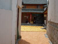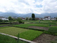 31.7. Do Dalí jsme přijeli trochu odpočinout od velkých čínských měst, kterým se člověk při cestování na jih prostě nevyhne. Aspoň na tři dny do přírody a do vesnic. Dalí je rozdělené na starou a novou část, my míříme do té staré pod hory Cangshan a k jezeru Erhai. Je to tak trochu turistické centrum, ale naštěstí hlavně pro Číňany a ceny jsou v pohodě (pokoj 70J noc, jídlo 15-30J). Celé město působí tak trochu hippie dojmem, což je velmi příjemné překvapení. Hned ráno vyrážíme k jezeru a abychom toho viděli co nejvíce (vůbec ne kvůli lenosti) si půjčujeme motorku a jezdíme po cestách i necestách v okolních vesnicích u jezera. Snad jen škoda, že se nedá koupat. Dva odvážlivce sice vidíme, ale na to bychom potřebovali čínskou kůži a hlavně zažívání. Po okolí jsou všude vidět farmářské osady, pěstuje se hlavně kukuřice a velké části silnic slouží k jejímu sušení na prudkém slunci. Suší se poctivě, do večera jsme oba spálení. Na fotce je také ještě sbírání šneků z řeky, ty je možné večer pojídat naložené v oleji a chilli. Vůbec lokákní zdroje jsou hojně využívány, stačí ukázat do kádě, vybrat patřičné ryby/kraby/kobylky/šneky/nespočet zeleniny a během chvilky je vše připravené. My volíme alespoň tu zeleninu, je vynikající.